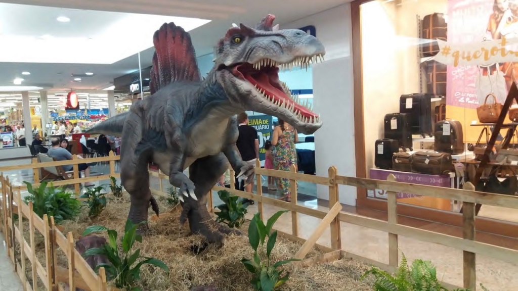 Você sabia? Das espécies expostas, o Espinossauro viveu há 100 milhões de anos atrás na região do Brasil. Sendo o maior dinossauro terópode que já existiu, chegando a pesar até 7 toneladas.