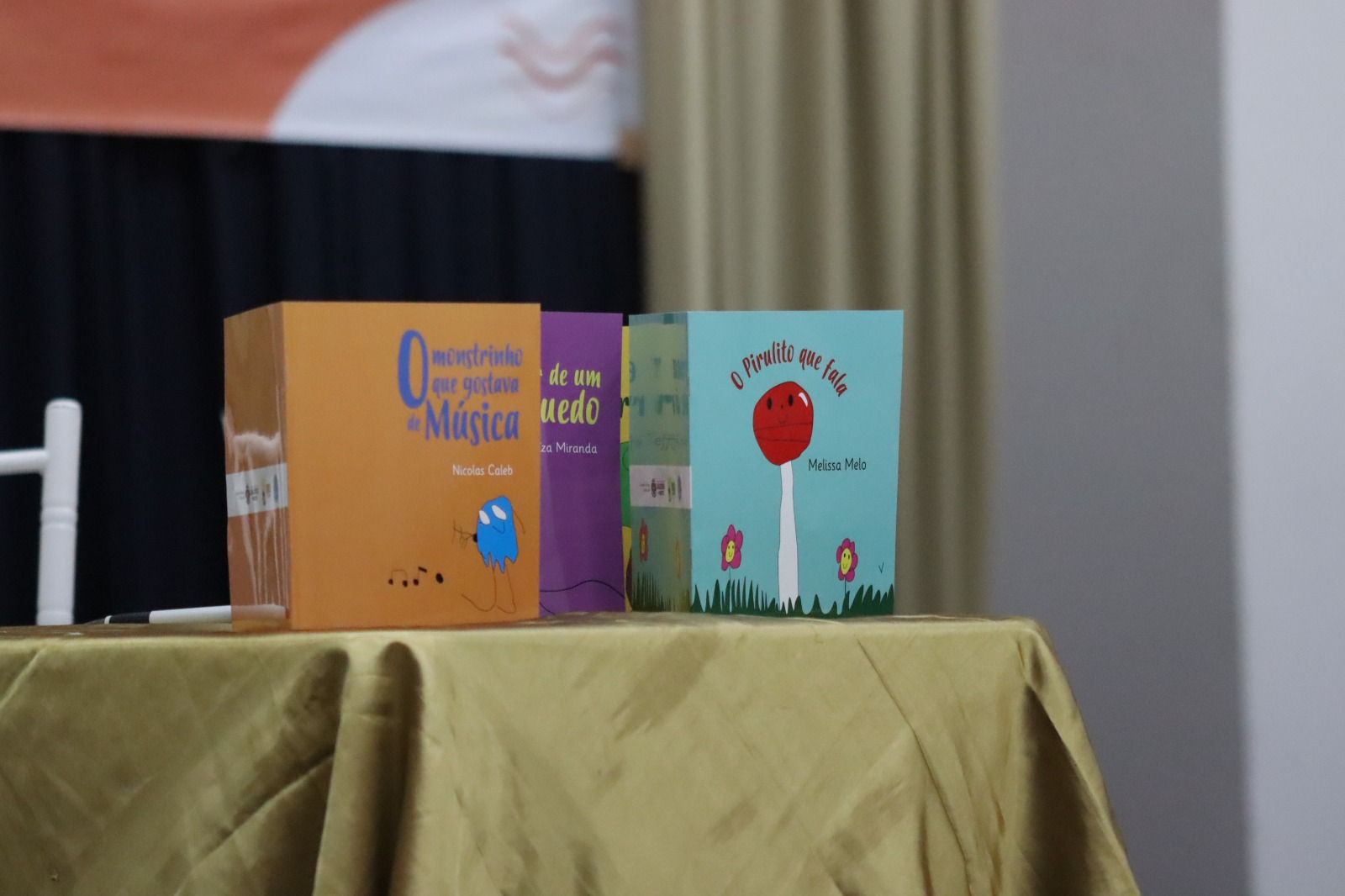 Na Escola Professora Nair Silva, foram selecionados dois livros: “Iara”, de Maria Giovanna Rodrigues da Silva, e “Os Pintinhos do Papai”, de Luiz Gustavo da Silva Santos, destacando imaginação, delicadeza e ludicidade.