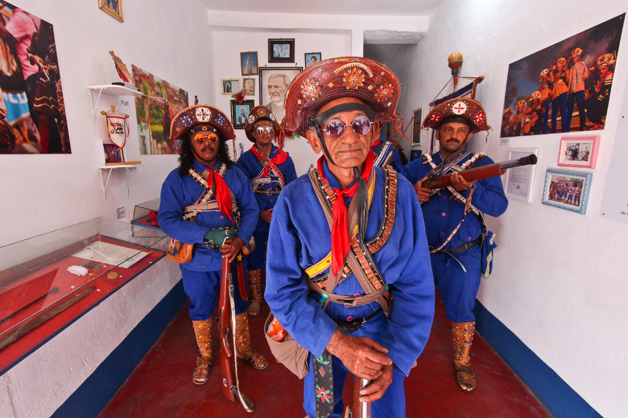 Estilo cangaceiro, que Mestre Nena conta mais de 50 anos da cultura popular em seu museu orgânico, localizado no João Cabral. O Mestre coordena o grupo Bacamarteiros da Paz, o grupo dança e reconta o legado cangaceiro do sertão. No percurso do museu a cultura popular aparece nas vestimentas, nos acessórios e na oralidade da dança.